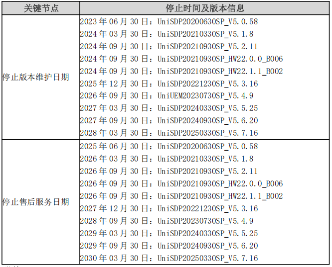 聯(lián)軟科技每年在 12 月份發(fā)布長(zhǎng)期支持的軟件版本,現(xiàn)對(duì)公司產(chǎn)品生命周期管理各時(shí)間節(jié)點(diǎn)明確,如下表格所示: