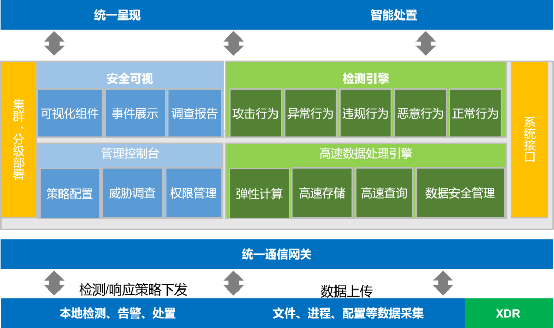 UniEDR終端檢測(cè)與響應(yīng)系統(tǒng)通過(guò)終端系統(tǒng)級(jí)數(shù)據(jù)進(jìn)行全面采集,基于A(yíng)TT&CK框架對(duì)終端上的危險(xiǎn)行為和入侵行為進(jìn)行檢測(cè),基于機(jī)器學(xué)習(xí)對(duì)終端上的異常行為進(jìn)行檢測(cè),內(nèi)置專(zhuān)家規(guī)則和誘餌對(duì)惡意行為進(jìn)行快速判定,同時(shí)針對(duì)上述威脅進(jìn)行及時(shí)告警,并通過(guò)威脅調(diào)查工具進(jìn)行全面取證,通過(guò)控制、隔離、刪除等措施進(jìn)行處置,并對(duì)受損終端進(jìn)行恢復(fù)。