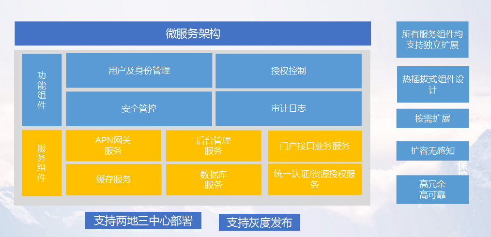在管理后臺上,聯(lián)軟的統(tǒng)一端點管理UEM通過微服務(wù)架構(gòu),實現(xiàn)了便捷的快速擴展支持,所有組件都支持熱插拔,無感知擴容,整個系統(tǒng)支持金融行業(yè)常見的兩地三中心部署,支持灰度發(fā)布,實現(xiàn)了金融級的超高可靠性。另外,所有的后臺能力,都提供了API對外輸出,可以由用戶的安全管理中心進(jìn)行集成和調(diào)用,從而無縫融入到客戶的整體安全架構(gòu)中。