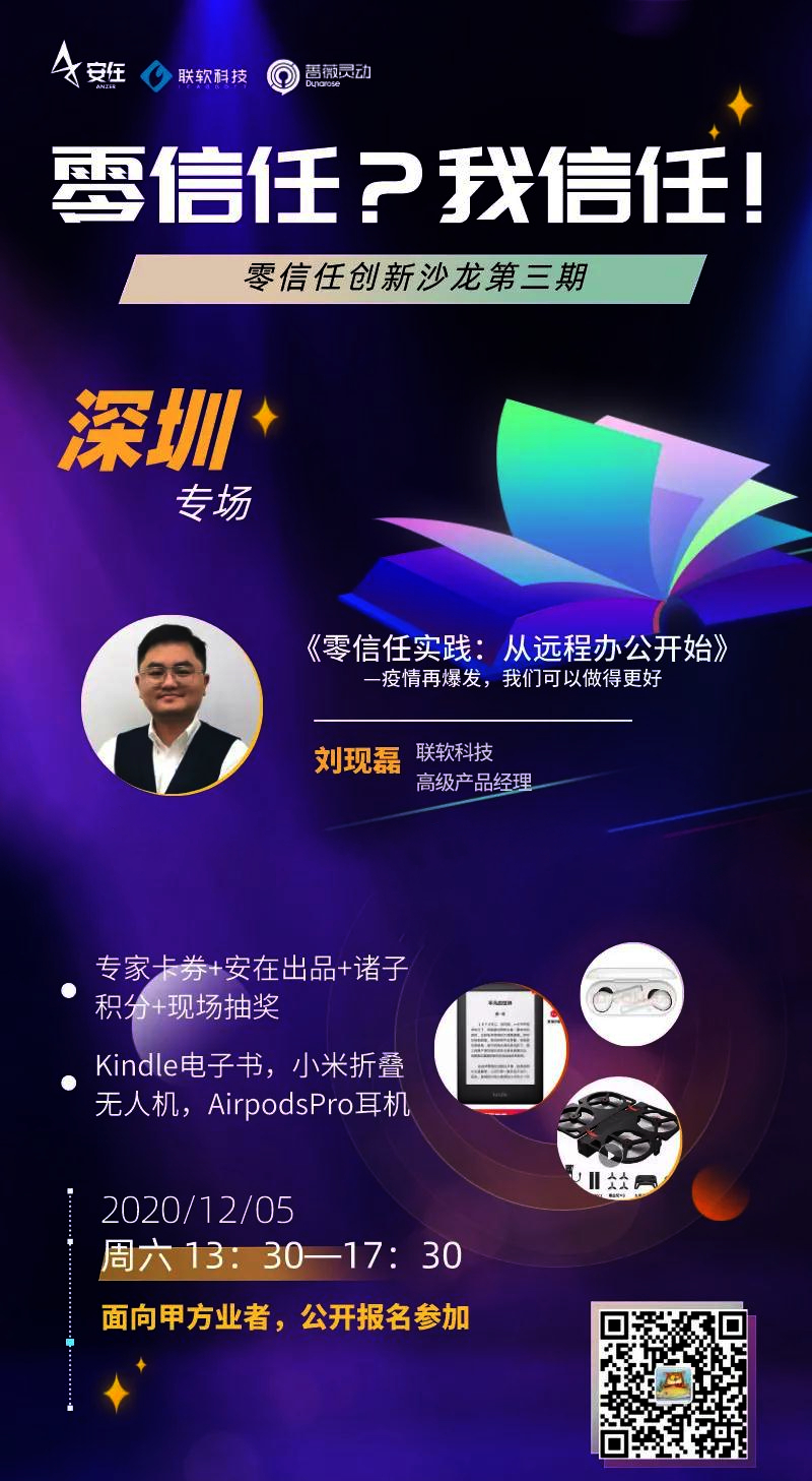 在年初整個大環(huán)境略顯衰頹的當(dāng)下,網(wǎng)絡(luò)安全行業(yè)逆勢飛揚(yáng),聯(lián)軟科技的零信任方案在疫情期間得到進(jìn)一步成功落地實(shí)踐,助力了多家客戶復(fù)工復(fù)產(chǎn)。在面對疫情再次來襲的壓力下,我們可以做的更好!掃碼報名,12月5日,聯(lián)軟分享,給你答疑解惑!