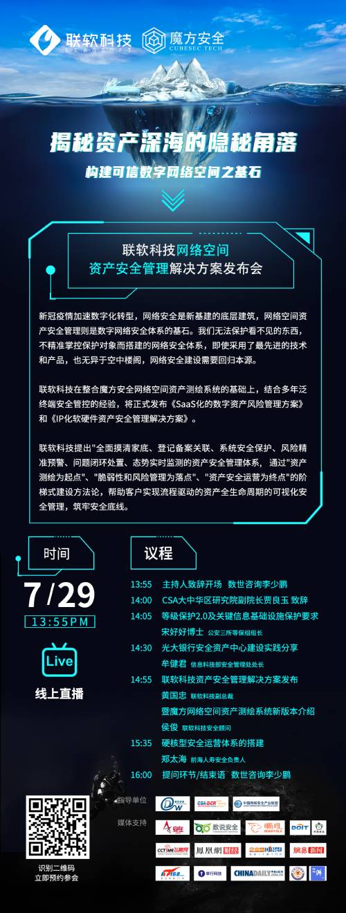 7月29日聯(lián)軟科技網(wǎng)絡(luò)空間資產(chǎn)安全管理解決方案發(fā)布會(huì)