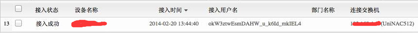 微信準(zhǔn)入控制認(rèn)證后,在UniNAC審計(jì)信息中會(huì)留下記錄,接入用戶名為加密后的唯一ID,后續(xù)會(huì)對(duì)ID和昵稱進(jìn)行解析。