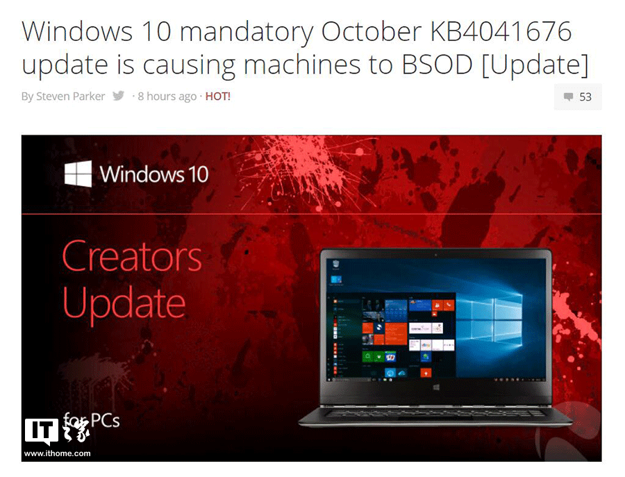 在本月微軟的“周二補丁日”中,微軟面向Win10 PC和Win10 Mobile設(shè)備推送了Windows10創(chuàng)意者更新正式版15063.674累計更新(v.1703),其中PC版具體型號是KB4041676。然而不少用戶發(fā)現(xiàn),PC系統(tǒng)更新后出現(xiàn)了藍屏問題,導(dǎo)致部分用戶無法進行正常升級。