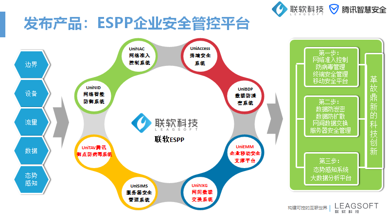 “結(jié)合聯(lián)軟科技(下簡稱聯(lián)軟)15年來在金融、制造、政府、運(yùn)營商等行業(yè)積累的豐富經(jīng)驗與騰訊在大數(shù)據(jù)方面的優(yōu)勢,幫助政府、企業(yè)將信息置于‘可控邊界’之內(nèi)。聯(lián)軟基于可信數(shù)字網(wǎng)絡(luò)架構(gòu)TDNA(Trusted Digital Network Architecture)的思路設(shè)計產(chǎn)品,做到安全業(yè)務(wù)的融合?!甭?lián)軟科技副總裁張建耀對這次聯(lián)軟科技與騰訊智慧安全的深度合作充滿了信心。