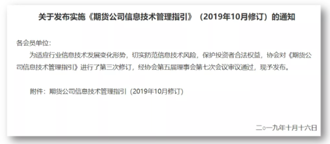 點擊下載《期貨公司信息技術(shù)管理指引》(2019年10月修訂版)