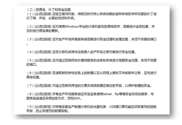 而且期貨企業(yè)內(nèi)部的跨網(wǎng)傳輸多數(shù)通過U盤/FTP服務(wù)器進行,但在【防病毒、補丁和安全加固】章節(jié)內(nèi),要求對移動存儲設(shè)備接入內(nèi)部前需進行安全檢查和防病毒檢查。對光盤刻錄、USB接口進行管控,避免使用telnet、ftp等服務(wù)。同時,該章節(jié)內(nèi)要求及時進行病毒庫/補丁庫的更新,傳統(tǒng)的人工更新的方式是滿足不了該需求。