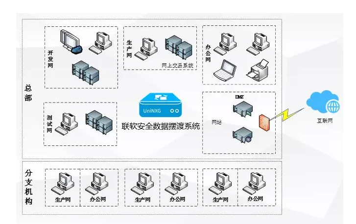 現(xiàn)階段,期貨行業(yè)企業(yè)一般通過防火墻或虛擬安全域手段將企業(yè)內(nèi)部網(wǎng)絡(luò)劃分為生產(chǎn)、辦公、開發(fā)、測試、DMZ及分支機構(gòu)等網(wǎng)絡(luò)區(qū)域。但在實際業(yè)務(wù)辦公中存在大量同網(wǎng)內(nèi)或跨多網(wǎng)間的文件傳輸需求,如辦公網(wǎng)每天需要獲取生產(chǎn)網(wǎng)內(nèi)交易數(shù)據(jù)、辦公網(wǎng)需上傳文件/程序到開發(fā)網(wǎng)內(nèi)云終端、測試網(wǎng)日志需傳輸?shù)介_發(fā)網(wǎng)等。