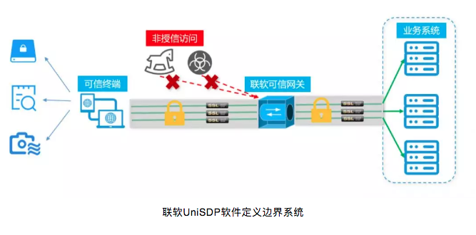 聯(lián)軟科技依托零信任安全架構(gòu),通過(guò)公司在企業(yè)安全領(lǐng)域的創(chuàng)新技術(shù)賦能,發(fā)布了面向未來(lái)、安全有效的新一代安全訪問(wèn)控制系統(tǒng)--聯(lián)軟UniSDP軟件定義邊界系統(tǒng),通過(guò)以身份為核心的動(dòng)態(tài)自適應(yīng)訪問(wèn)控制策略模型,使企業(yè)的安全邊界從防火墻等物理邊界升級(jí)為圍繞終端和用戶的柔性邊界,保障企業(yè)遠(yuǎn)程辦公的安全。