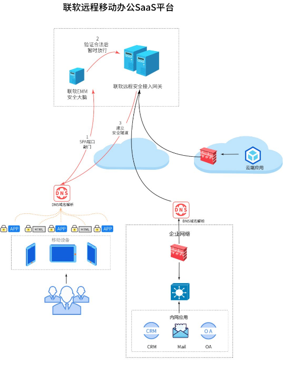 聯(lián)軟已經(jīng)在公有云平臺(tái)上部署了移動(dòng)安全辦公SaaS服務(wù)平臺(tái),企業(yè)用戶無(wú)需在內(nèi)網(wǎng)部署任何軟硬件,只需要簡(jiǎn)單注冊(cè)開通,即可讓員工下載專用的安全辦公門戶APP進(jìn)行移動(dòng)安全辦公。整個(gè)過(guò)程無(wú)需當(dāng)面接觸,安全,極速交付,即需即用。