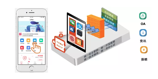 企業(yè)移動管理平臺以SDK方式為企業(yè)移動業(yè)務(wù)提供完整的安全能力以及公共業(yè)務(wù)能力,如水印、消息推送、數(shù)據(jù)流處理等。這樣開發(fā)者可以專注在業(yè)務(wù)創(chuàng)新側(cè),新的移動業(yè)務(wù)只需要考慮業(yè)務(wù)邏輯和處理流程,減少以往移動業(yè)務(wù)開發(fā)需要涉及的模塊,縮短開發(fā)周期,助力企業(yè)移動應(yīng)用輕量化,加速業(yè)務(wù)創(chuàng)新。