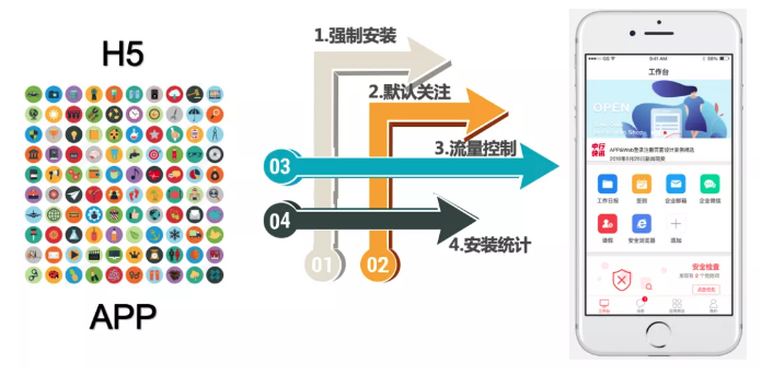 企業(yè)移動管理平臺對應(yīng)的終端APP集成了每個(gè)用戶權(quán)限內(nèi)所有企業(yè)移動應(yīng)用,只需要一次安裝,即可暢快使用所有移動辦公應(yīng)用;集成了單點(diǎn)登錄模塊,終端用戶無需記錄多個(gè)移動辦公業(yè)務(wù)的賬號密碼,只要成功登錄了企業(yè)移動管理平臺,即可免密使用所有移動辦公應(yīng)用,既便捷又提高了安全性;終端用戶使用移動辦公業(yè)務(wù)的任何問題都可以在相應(yīng)應(yīng)用進(jìn)行反饋,幫助業(yè)務(wù)快速迭代。