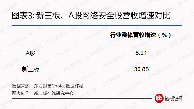 去年年中,新三板上已公布2016年年報的79家網絡安全企業(yè)中營收過億的有23家;而新三板上網絡安全行業(yè)整體營收規(guī)模同比增長30.88%,其中營收過千萬,且增速超50%的企業(yè)有29家。