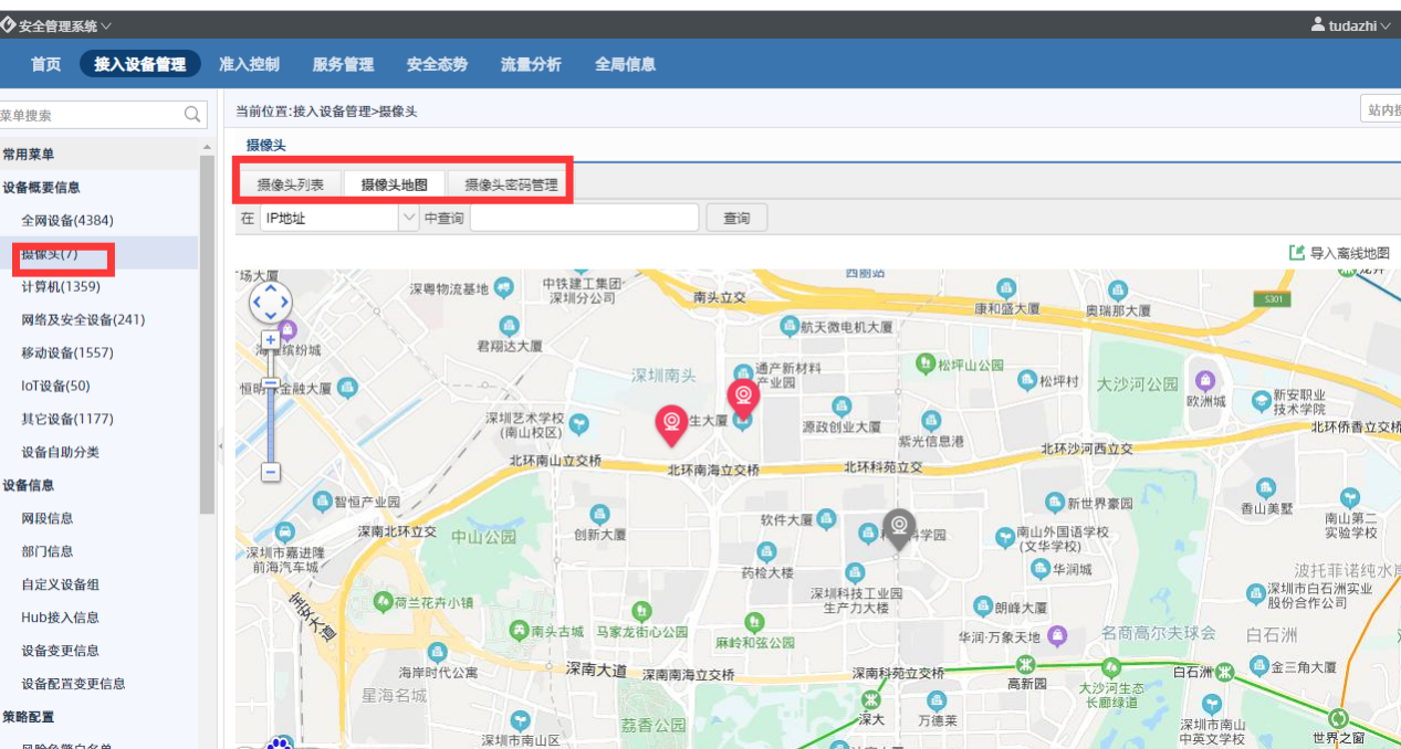 通過不同維度的資產(chǎn)屬性組合,建立資產(chǎn)唯一標(biāo)識指紋信息,進而積累豐富的資產(chǎn)指紋類型,構(gòu)建強大的指紋識別庫。自動發(fā)現(xiàn)部署在網(wǎng)絡(luò)中的攝像頭,并收集網(wǎng)絡(luò)攝像頭的IP、MAC、在線狀態(tài)、設(shè)備類型、接入位置等信息,便于用戶掌握資產(chǎn)情況。