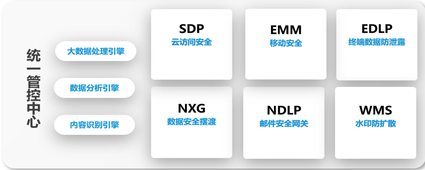 聯(lián)軟科技《數(shù)據(jù)安全解決方案》包含云安全訪問、移動安全、終端數(shù)據(jù)防泄露、數(shù)據(jù)安全擺渡、郵件安全網(wǎng)關(guān)、水印防擴散6大組成部分,具有領(lǐng)先的大數(shù)據(jù)處理引擎、數(shù)據(jù)分析引擎和內(nèi)容識別引擎,為用戶提供全方位的數(shù)據(jù)安全防護支持。
