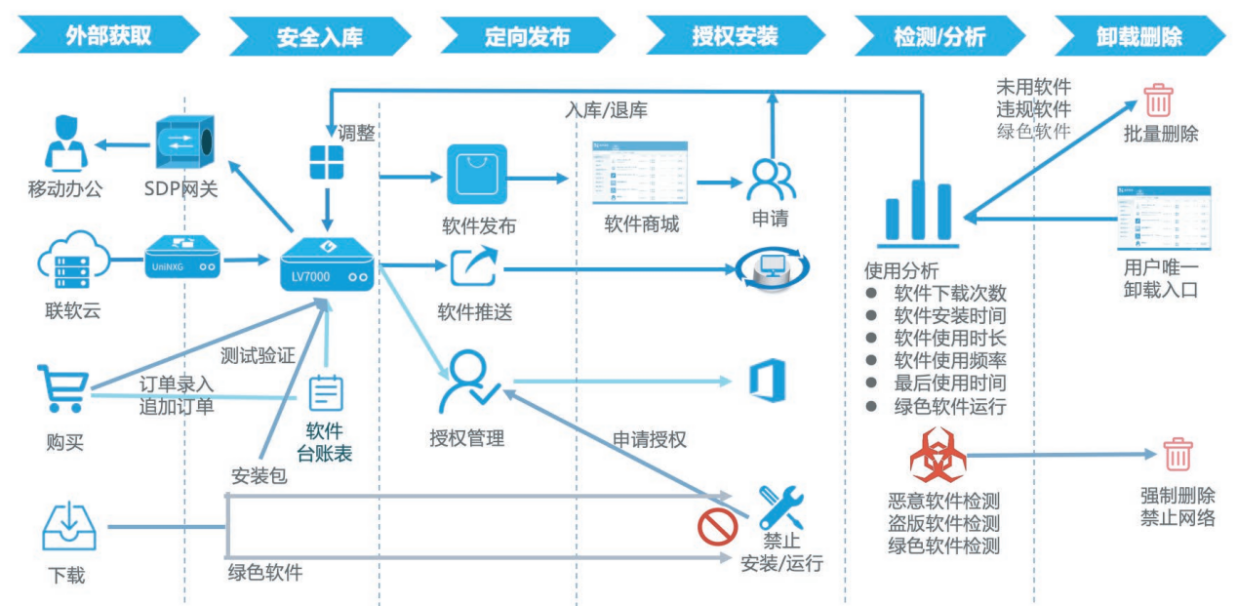 聯(lián)軟科技提供的企業(yè)軟件管理解決方案,不但滿足《正版軟件管理工作指南》中關(guān)于企業(yè)軟件正版化管理的要求,也能幫助企業(yè)規(guī)范軟件標(biāo)準(zhǔn)化管理。